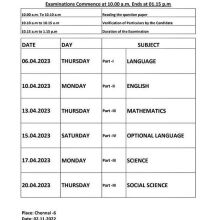 The Public Examination for the 10th Standard students is scheduled to commence on 6th April and concludes on 20th April.